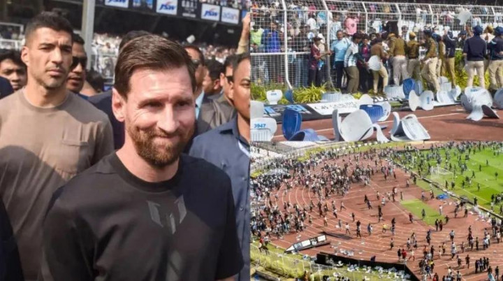 最近梅西的印度行!4天行程狂赚8.9亿卢比,折合东谈主民币快7000万,成果首站出场才10分钟就跑路,获胜激发数万东谈主砸场骚乱,主理方赶快被窥察带走。