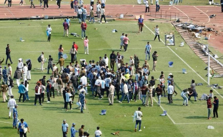 真确的导火索是有东谈主拿笔要签名时,笔尖获胜划伤了梅西。安保团队赶快急了,牙东谈主喊着西班牙语“人命”预警,二话没说就把梅西护着离场。看台上8万多球迷,大多连梅西的脸齐没看清,花的钱打了水漂,情怀获胜炸了——水瓶、座椅往场里扔,上千东谈主冲进球场砸VIP棚屋、烧沙发,亏蚀齐快2亿卢比了。